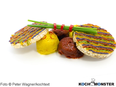 "Richtig scharf kochen", das neue Buch von Kochmonster-Herausgeber Peter Wagner (erschienen bei der Stiftung Warentest) ist weltweit das erste Kochbuch, das die kulinarische Schärfewirkung von mehr als 60 schärfenden Zutaten quer durch alle Gruppen wertend vergleicht, in eine gemeinsame Skala von 1-10 einordnet und natürlich auch mehr als 100 Rezepte zu diesen Scharfmachern aus aller Welt zeigt: Chili, Echte und Falsche Pfeffer, Ingwer, Zwiebelgewächse, Sprossen, Kressen und Kräuter, Meerrettich/Wasabi bis hin zu schärfenden Abschmeckungen mit Cassia-Zimt und hochprozentigem Alkohol. Mehr zum Buch hier...