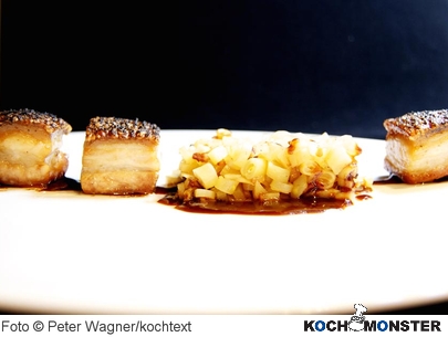 Schwein, lange Zeit als vemeintlich minderes Fleisch aus der Hochküche verbannt, kehrt seit Kurzem im Galopp auf die Speisekarten der Spitzengastronomie zurück. Der Berliner Sternekoch Wolfgang Müller hat mit "Schwein – das große Kochbuch" der Sau nun ein ganzes Werk mit Highend-Rezepten gewidmet – zusammen mit Kochmonster-Herausgeber Peter Wagner, der die Texte rings um die Rezepte beisteuerte. Zur Rezension....