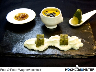 Ein sättigendes und dennoch leicht bekömmliches Gericht aus dem Rezeptefundus der äußerst geschmacksbetonten Veganerküche vom Berliner Star-Veggie-Koch Jean-Christian Jury. Lässt sich für Lacto-Vegetarier auch gut mit Milch & Sahne zubereiten. Wer muss da noch Tiere belästigen? Zum Rezept...
