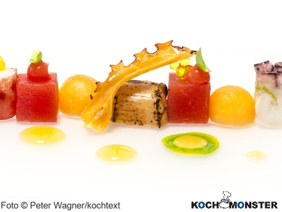 "Richtig scharf kochen", das neue Buch von Kochmonster-Herausgeber Peter Wagner (erschienen bei der Stiftung Warentest) ist weltweit das erste Kochbuch, das die kulinarische Schärfewirkung von mehr als 60 schärfenden Zutaten quer durch alle Gruppen wertend vergleicht, in eine gemeinsame Skala von 1-10 einordnet und natürlich auch mehr als 100 Rezepte zu diesen Scharfmachern aus aller Welt zeigt: Chili, Echte und Falsche Pfeffer, Ingwer, Zwiebelgewächse, Sprossen, Kressen und Kräuter, Meerrettich/Wasabi bis hin zu schärfenden Abschmeckungen mit Cassia-Zimt und hochprozentigem Alkohol. Mehr zum Buch hier...