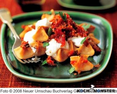 Die Teigpäckchen, die irgendwo zwischen chinesischen Klößchen und italienischer Pasta rangieren, sind in Anatolien als Snack beliebt. Die Kichererbsenfüllung ist für Vegetarier geeignet, ob als Snack oder als vollständige Mahlzeit.