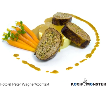 Das Prinzip Rollbraten hat ja den tieferen Sinn, außen eine Schicht krosses Fleisch zu erzeugen, das nach innen hin saftig bleibt – auch weil die Gesamt-Garzeiten mittels der zügig durchgegarte Füllungen im Inneren (Weißbrot, Ei, helle Farce...[mehr...]