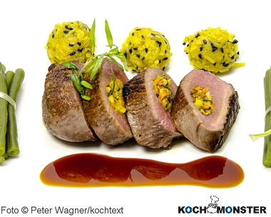 Alexander Reiter, der über ein Jahr in Kairo als Küchenchef arbeitete, über dieses Rezept: "Eine Leidenschaft von mir sind die Küche und die Gewürze des Orients. Wer einmal die Düfte, das Treiben und die Atmosphäre eines Gewürzmarkte...[mehr...]