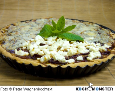 Ziegentarte mit Karamellzwetschgen und Minzjoghurt