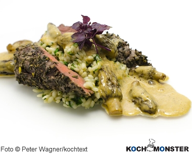 Lammfilets im Kräutermantel mit Bärlauchrisotto und Morchelrahm