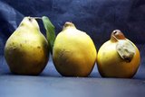 Kernobst. Frucht des Quittenstrauches. Selten Frischverzehr. Hoher Pektingehalt: Verarbeitung zu Kompott, Marmelade, Likör, Gelee. Klassiker: Membrillate.