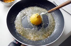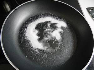 Mit auf Gabel aufgespießter Zitrone rühren, bis ein heller Karamell entsteht.