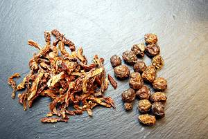 Am Vortag die getrockneten Tomatenfilets in sehr feine Streifen schneiden und zusammen mit den Buschtomaten...