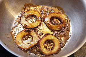 Die Früchte sollten dabei noch bissfest bleiben. Auf Backpapier auskühlen lassen.