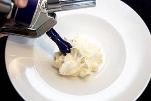 Den Espumain vier tiefe Teller (z.B. Pastateller) einschäumen.