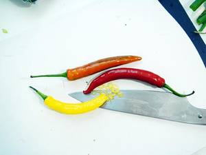 Chili (oder Peperoni) in hauchdünne Ringe schneiden.