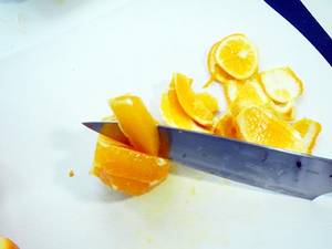 ohne die Trennhäutchen herausschneiden (an den Filets darf keinerlei weiße Haut mehr sein).