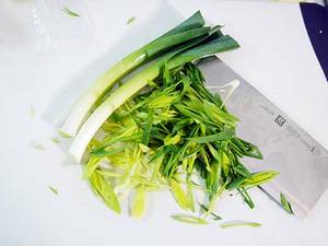 Lauch putzen und in dünne, schräge Ringe schneiden.