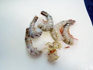 Garnelen wenn nötig auftauen, schälen und entdarmen.