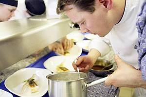 Knochen und Parüren in einem Topf mit Erdnussöl und Butterschmalz im Backofen bei 220 Grad braun anrösten. Das Fett abgießen und die Knochen beiseite geben. Schalotten, Champignons und das Gemüse fein würfeln, Knoblauchzehen andrücken, alles im selben Topf anbraten. Mit Sherry ablöschen, einkochen lassen. Knochen, Parüren (geschälte) Tomaten, zerdrückten Pfeffer und Lorbeer zugeben, mit Geflügelfond aufgießen, 4,5-5 Stunden leicht köcheln lassen. Anschließend durch ein Passiertuch gießen, die Kräuter zugeben und 30 Min. ziehen lassen. Nochmals durch ein Sieb gießen und zur gewünschten Konsistenz reduzieren lassen. Mit der Butter aufmontieren und eventuell mit Salz und Pfeffer nachwürzen.
