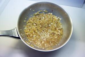 Olivenöl in Sauteuse oder Kaserolle erhitzen, Nudeln und Schalotten darin leicht glasig andünsten.