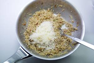 Wenn die Nudeln leicht al dente sind, Käse (auf einer Microplane Reibe zu Schnee gerieben),