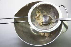 Mit einem Löffel durch ein Haarsieb streichen, bis nur noch die Schalen im Sieb sind.