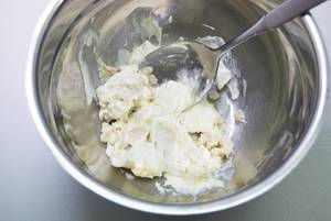 Die gesiebte Masse mit etwas Olivenöl und Schmand