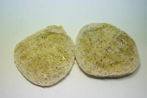 Diese Taler in beschichteter Pfanne ohne weitere Würzung mit wenig Olivenöl bei großer Hitze rasch goldgelb braten.