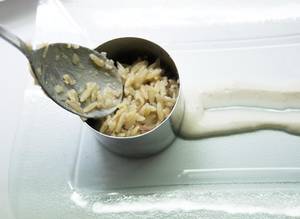 Evtl. die restlichen Käsescheiben, Risotto & Creme a partanbieten.