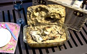 In heißen wie kalten Sommern ist die Idee, gebratene Hühnerkeulen in einem selbst gebackenen Brot zu thermokonservieren, brauchbar. Hierfür spicken wir die Schenkel mediterran mit Limetten, Knoblauch und Rosmarin, krossen die Haut unter dem Grill kurz an und versenken das Tier in selbst gekneteten Sauerteigmatsch. Brot und Fleisch bleiben, wenn man die Picknickdecke um die minimal abgekühlte Backform wickelt, locker bis zu zwei Stunden verzehrwarm – und man hat gleich ein extrem frisches Brot als Beilage für Hühnchen wie auch die anderen Fingerfoodfressereien parat.
