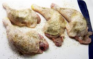 Keulen von beiden Seiten mit den Gewürzen einmassieren.
