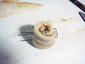 Straff zu Röllchen wickeln, mit Spießchen feststecken.