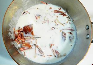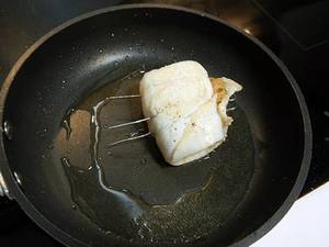 und in beschichteter Pfanne bei mittlerer Hitze langsam auslassen, aber nicht zu stark bräunen. In Sieb schütten und entfetten, Fett dabei auffangen und zum Anbraten von Kartoffeln und dem Fisch benutzen. Den ausgelassenen Speck mit weiteren Abschnitten und Schwarten in der Mischung aus Sahne und Fond 2 Min aufkochen. Temperatur reduzieren und bei geschlossenem Deckel 30 Min. ziehen lassen.