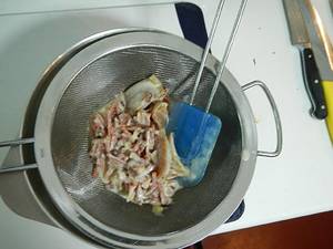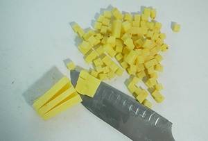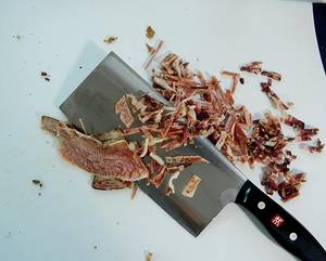 Speck (auch Abschnitte, harte Stücke, Schwarten) so klein wie möglich schneiden