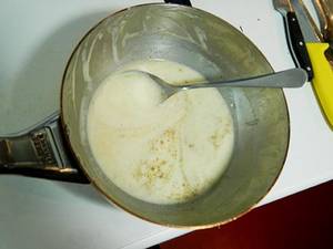 und mit der aus den restlichen Zutaten (außer den Frühlingszwiebeln) angerührten