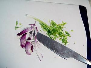 Vinaigrette übergießen. In dem Dressing auskühlen lassen und erst direkt vor dem Servieren die Frühlingszwiebeln schneiden