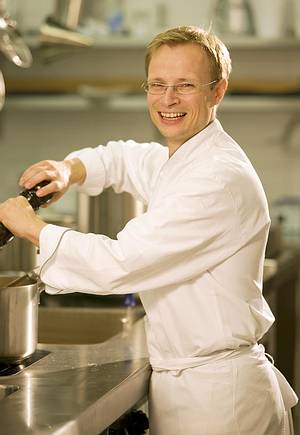 2009 war Gunter Ehinger der erste "Koch des Monats" bei Kochmonster. Hier zeigte er einen echten Sterneteller: in Öl bei 40 Grad pochierter Ostseesaibling in raffinierter Gemüseumgebung.