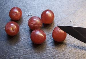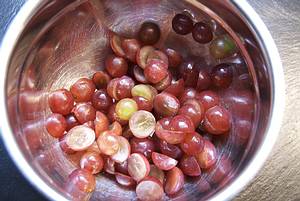 Restliche Trauben mittig teilen...