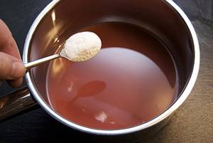 Erst bei Raumtemperatur leicht gelieren, dann ca. 60 Min. im Kühlschrank ausgelieren lassen.