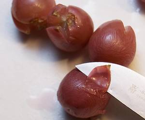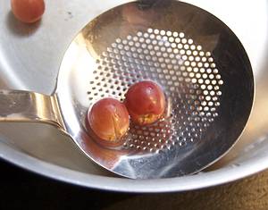 ...in Eiswasser abschrecken, schälen und bereit halten.