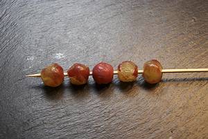 Je 4 geschälte Trauben auf einen Holzspieß stecken...