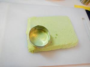 und das warme Fischfilet mit rundem Dessertring von ca. 5 cm Durchmesser ausstechen