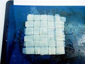 Auf einer eingefetteten Silpatmatte (oder Backpapier) aus den Spargelstreifen ein exaktes, straffes Gitter flechten.
