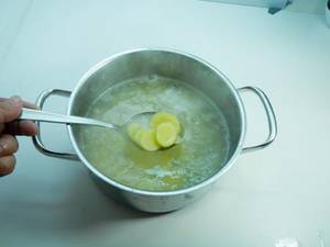 in Scheiben schneiden und in der Gemüsebrühe sehr weich kochen.
